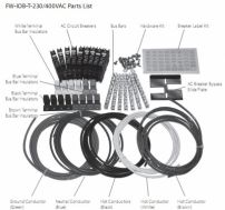 Includes: Nine 30A 230VAC single pole DIN mount breakers, sliding bypass interlock plate, wire and hardware kit